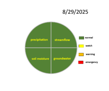 Groundwater: Is in the NORMAL status. Local groundwater level data is available through 8/4/2025. Local groundwater levels are at the lower-median average.